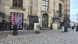 Zahlreiche Menschen haben in den letzten Tagen die Türchen unseres Adventskalenders geöffnet, an ganz unterschiedlichen Orten. Besonders in der Stadt Dresden waren wir präsent. Da hing nämlich das dritte Jahr in Folge unser Kalender in der Größe 3x2m an der Wand von der Domkirche Ss. Trinitatis. Mit QR-Codes für jeden einzelnen Tag.